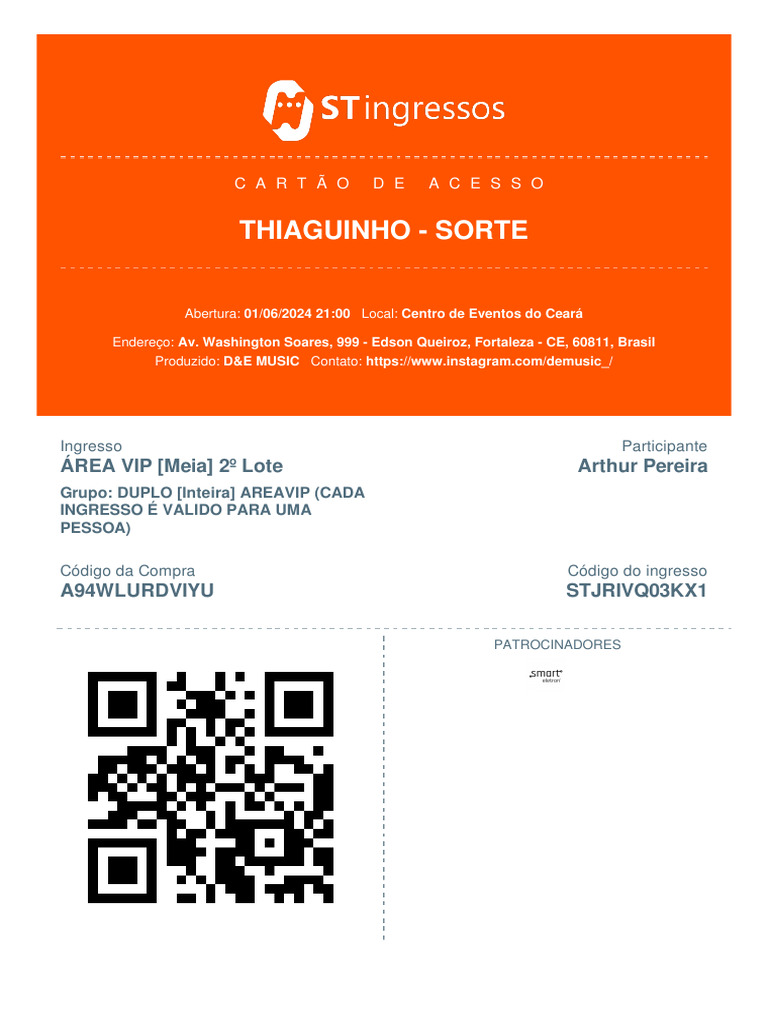 Você está recebendo apenas um ingresso da compra STJRIVQ03KX1. Este
