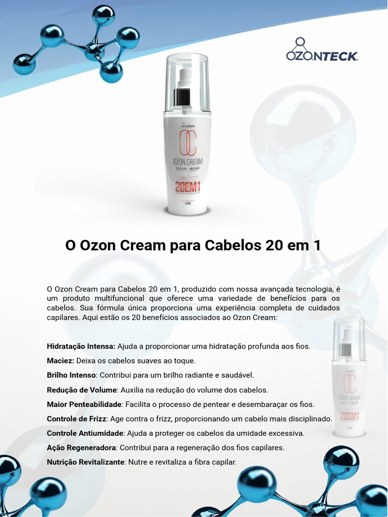 O Ozon Cream para Cabelos 20 em 1, produzido com nossa avançada tecnologia, é