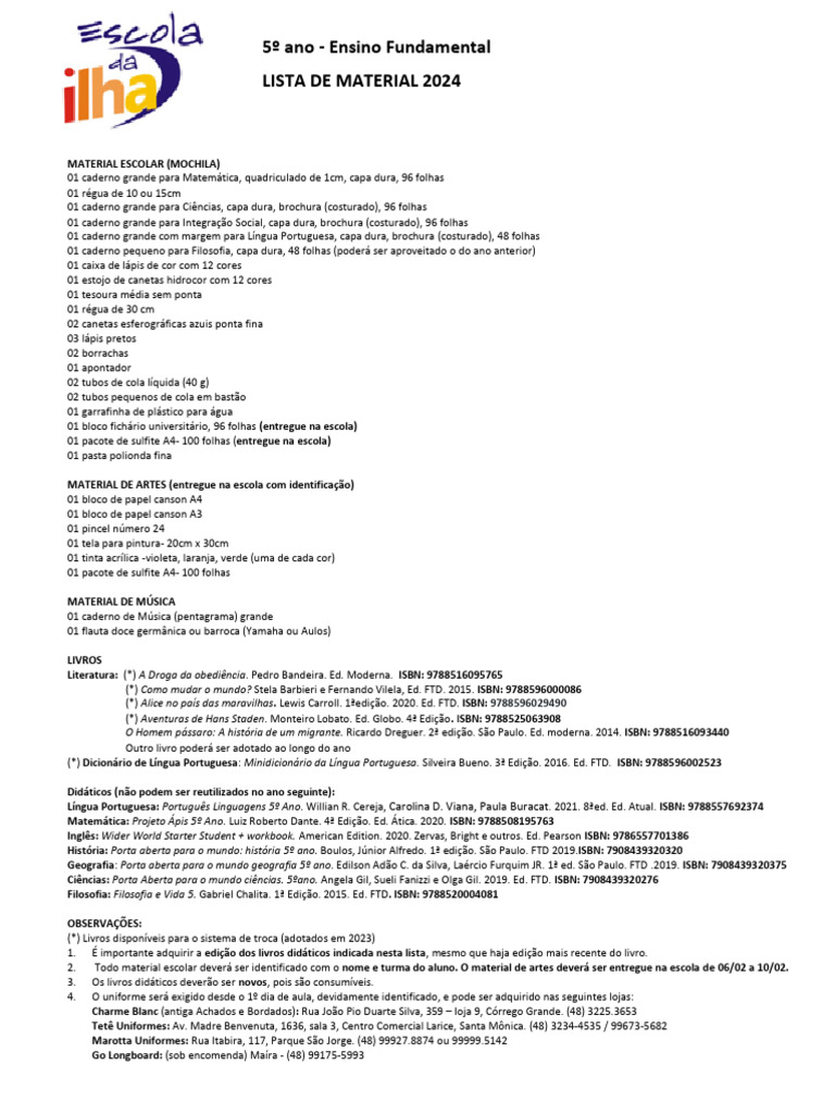 1. É importante adquirir a edição dos livros didáticos indicada nesta lista, mesmo que haja edição mais recente do livro.