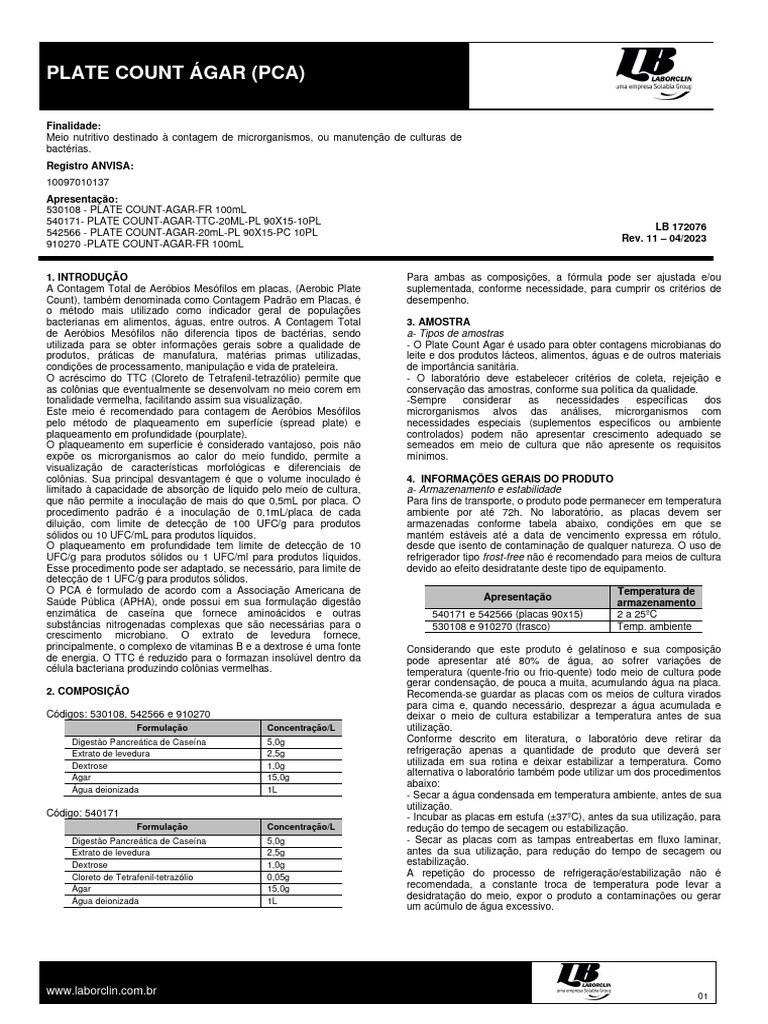 Este meio é recomendado para contagem de Aeróbios Mesófilos microrganismos alvos das análises, microrganismos com