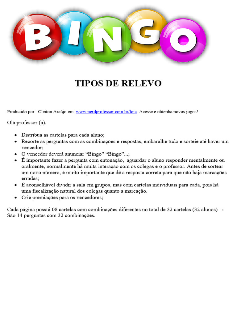 Cada página possui 08 cartelas com combinações diferentes no total de 32 cartelas (32 alunos) -