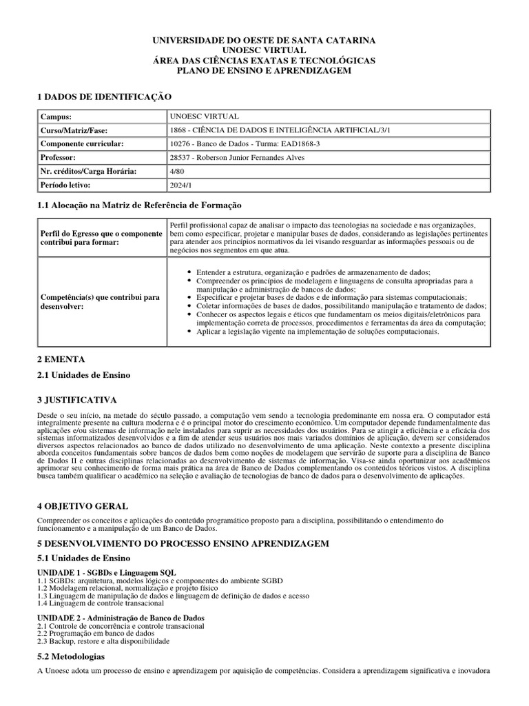 busca também qualificar o acadêmico na seleção e avaliação de tecnologias de banco de dados para o desenvolvimento de aplicações.