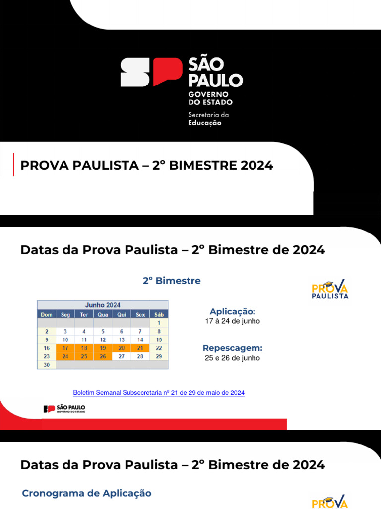 Datas da Prova Paulista – 2º Bimestre de 2024