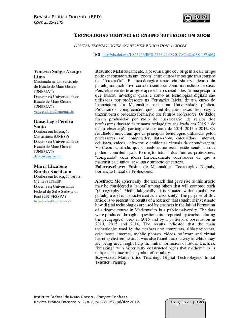 Revista Prática Docente. v. 2, n. 2, p. 138-157, jul/dez 2017. P á g i n a | 138