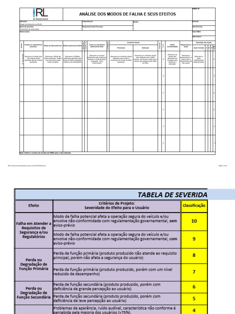 Nota: Indicar o número da revisão do FMEA para o item alterado.