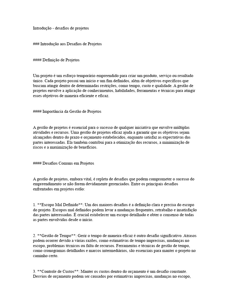#### Desafios Comuns em Projetos