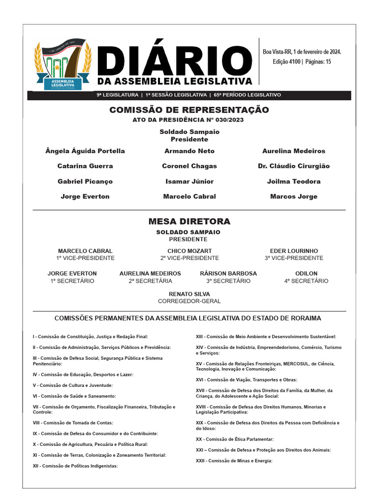 2 DIÁRIO DA ALE/RR ED. Nº 4100 BOA VISTA, 1 DE FEVEREIRO DE 2024