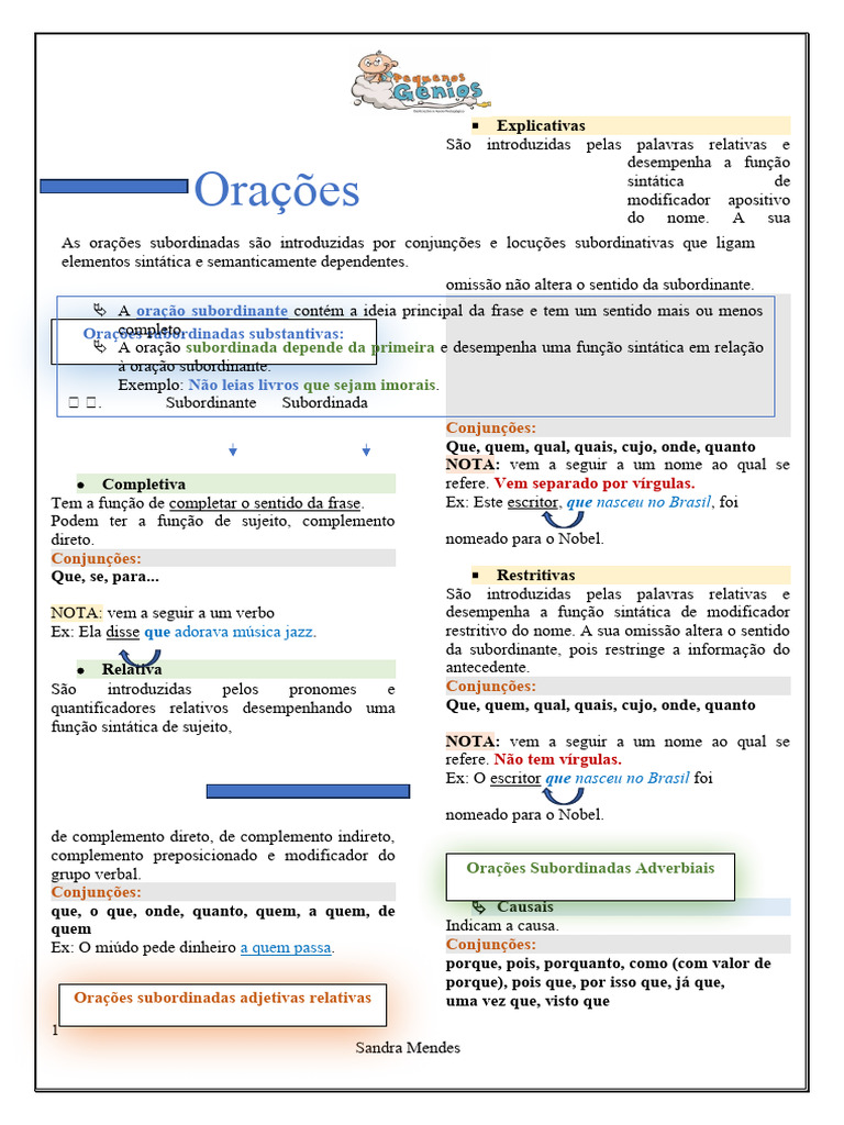 Ä A oração subordinante contém a ideia principal da frase e tem um sentido mais ou menos