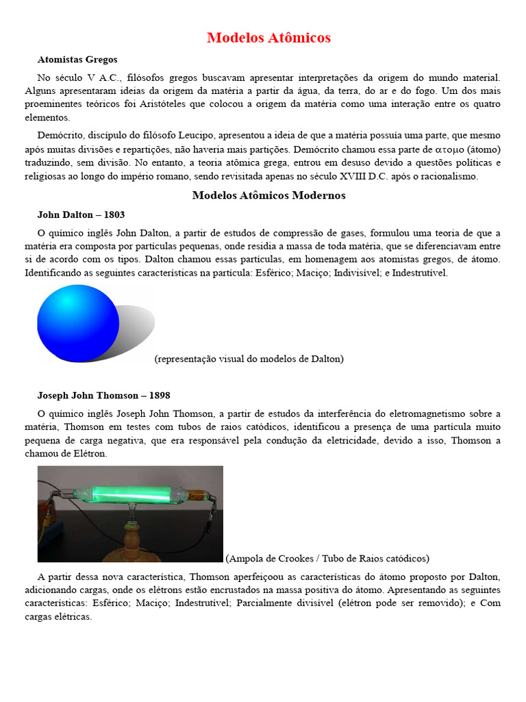 A partir dessa nova característica, Thomson aperfeiçoou as características do átomo proposto por Dalton,
