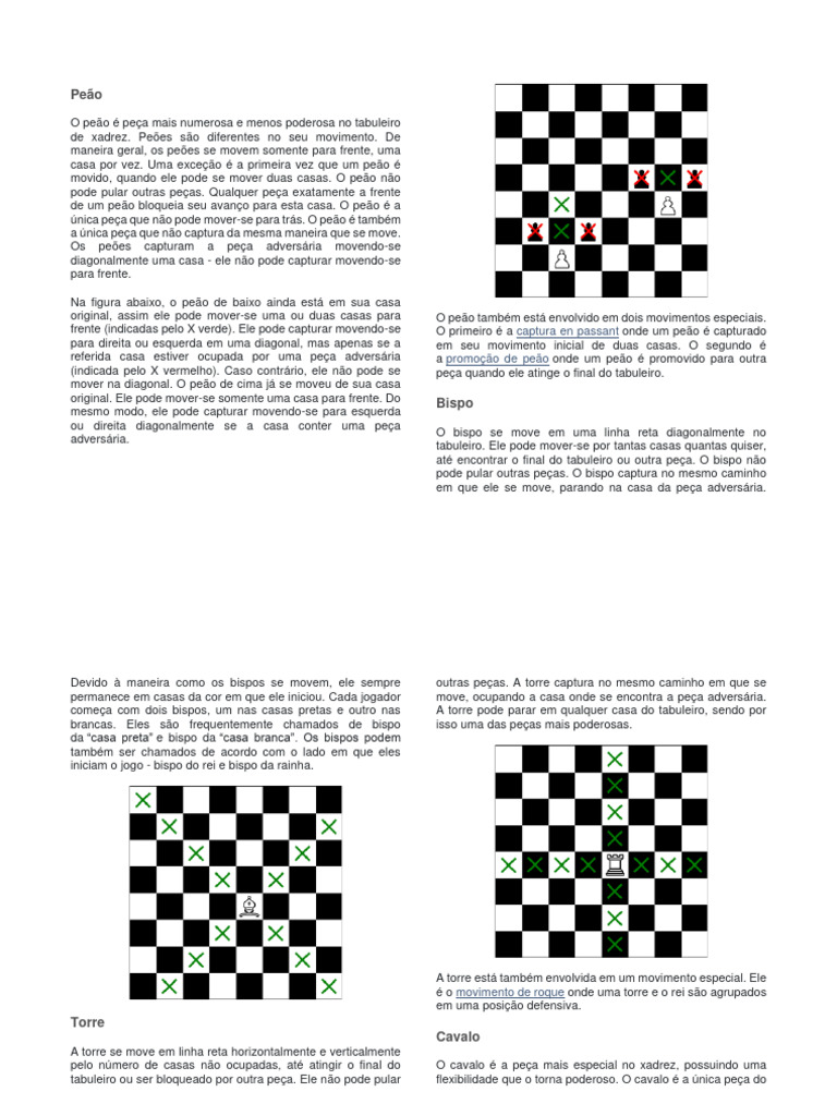 frente (indicadas pelo X verde). Ele pode capturar movendo-se O primeiro é a captura en passant onde um peão é capturado