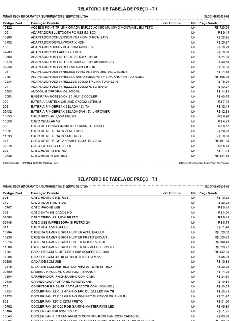 Data impressão: 12/6/2024 14:23:08 Páginas: 1/10 Software Desenvolvido: SystemPort Technology