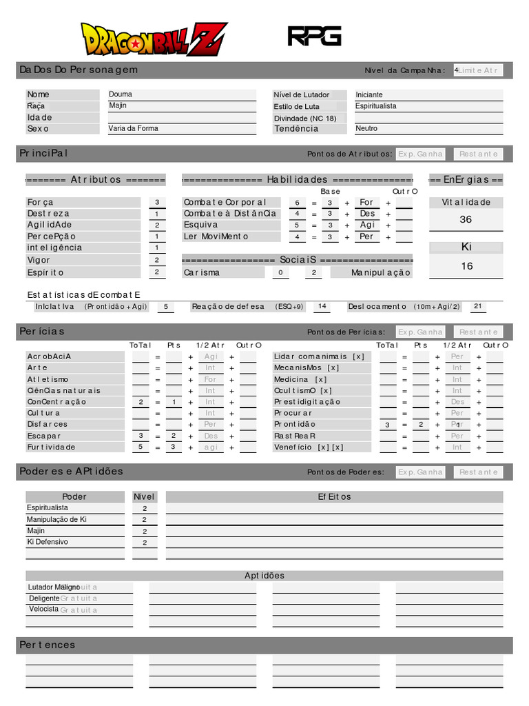 DaDos Do Personagem Nível da CampaNha: 4Limite Atr