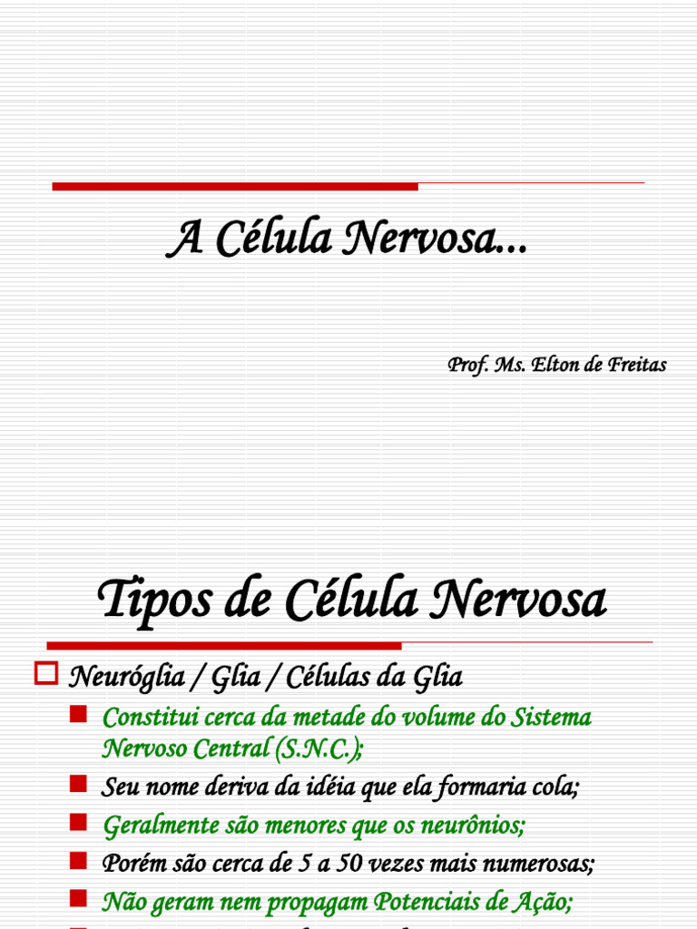 ◼ Existem seis tipos de Neuróglias: Astrócitos,