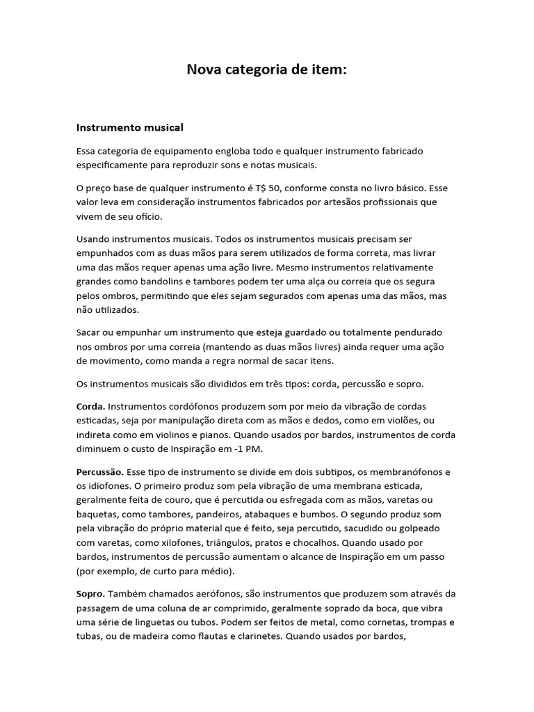Um instrumento musical pode receber todas as modificações que itens esotéricos e