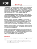materiais especiais, que funcionam de maneira diferente para instrumentos, conforme
