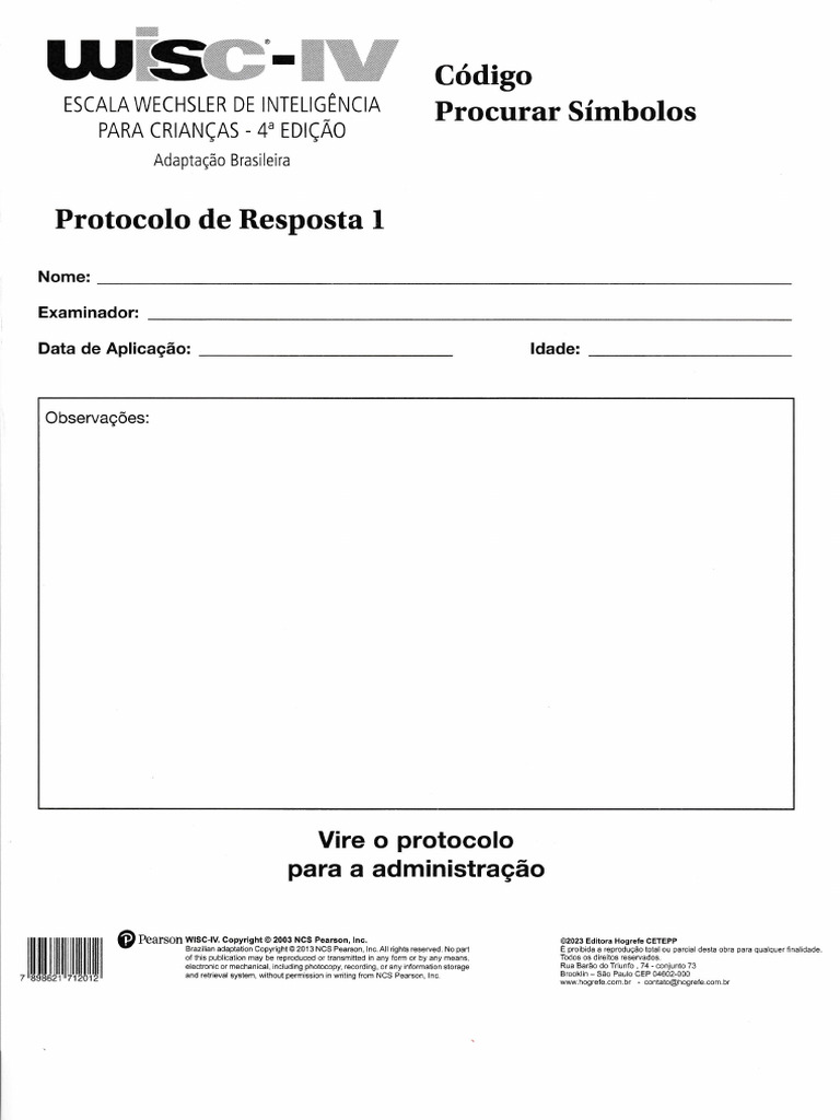 7 lluuu$ltililillull and retrieval system, without permission in writing from NCS Pearson, lnc. Brooklin - São Paulo CEP, 04602-000