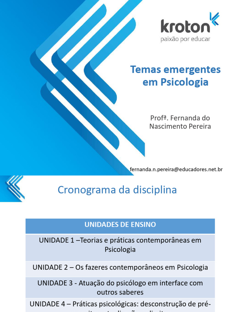 UNIDADE 2 – Os fazeres contemporâneos em Psicologia