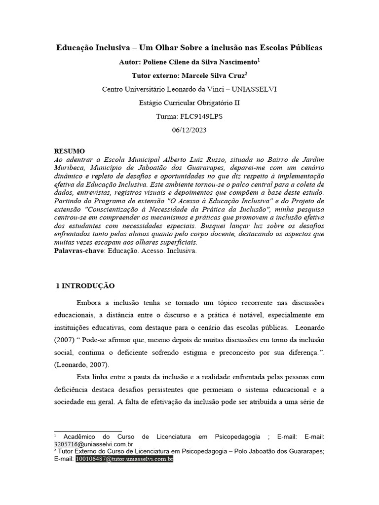 instituições educativas, com destaque para o cenário das escolas públicas. Leonardo