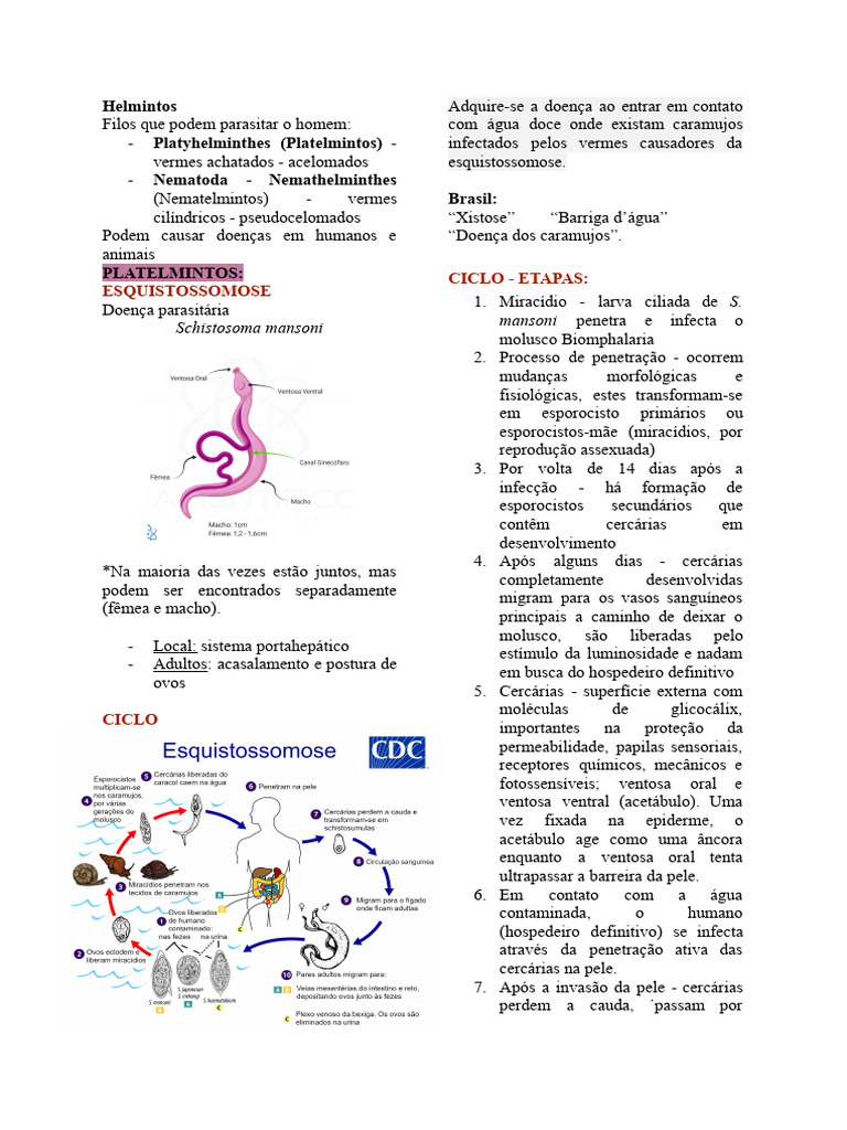 Doença parasitária 1. Miracídio - larva ciliada de S.