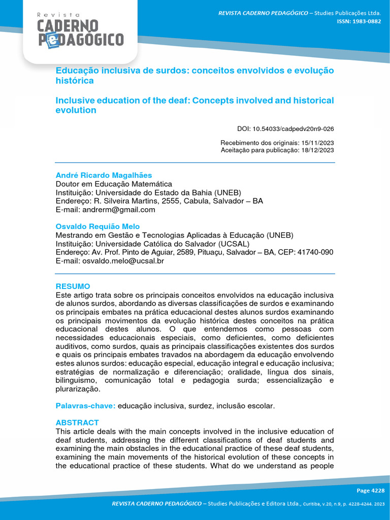 REVISTA CADERNO PEDAGÓGICO – Studies Publicações e Editora Ltda., Curitiba, v.20, n.9, p. 4228-4244. 2023