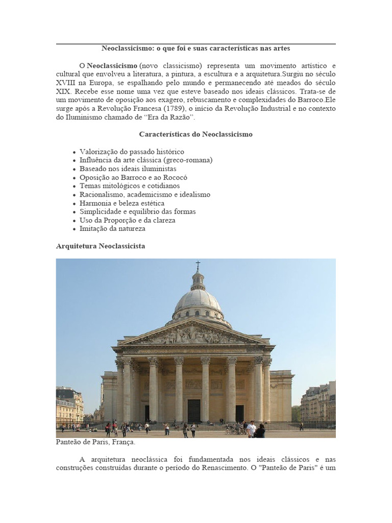 Características do Neoclassicismo