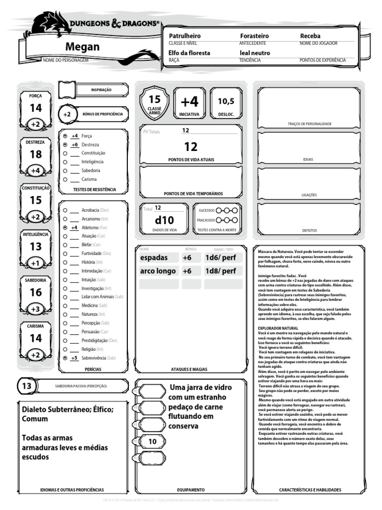 NOME DO PERSONAGEM RAÇA TENDÊNCIA PONTOS DE EXPERIÊNCIA