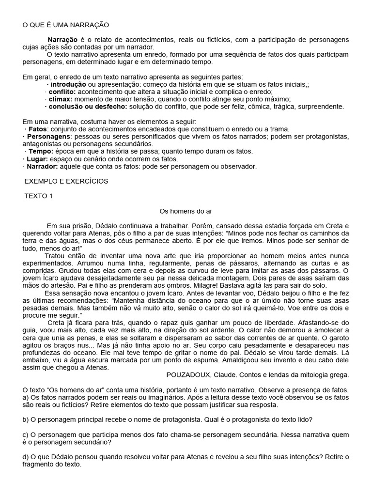 O texto narrativo apresenta um enredo, formado por uma sequência de fatos dos quais participam