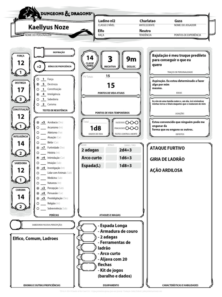 NOME DO PERSONAGEM RAÇA TENDÊNCIA PONTOS DE EXPERIÊNCIA