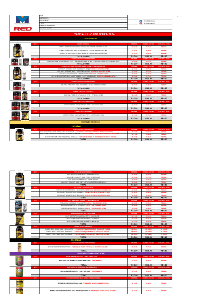 TOTAL COMBO R$ 0.00 R$ 0.00 R$ 0.00