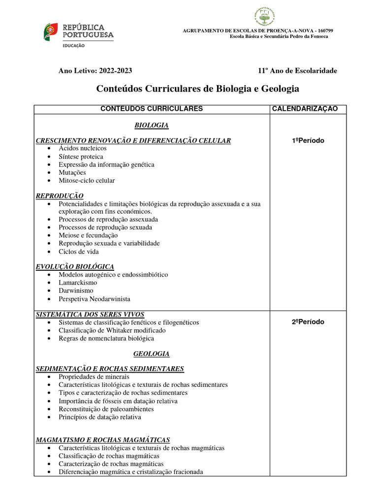 Ano Letivo: 2022-2023 11º Ano de Escolaridade