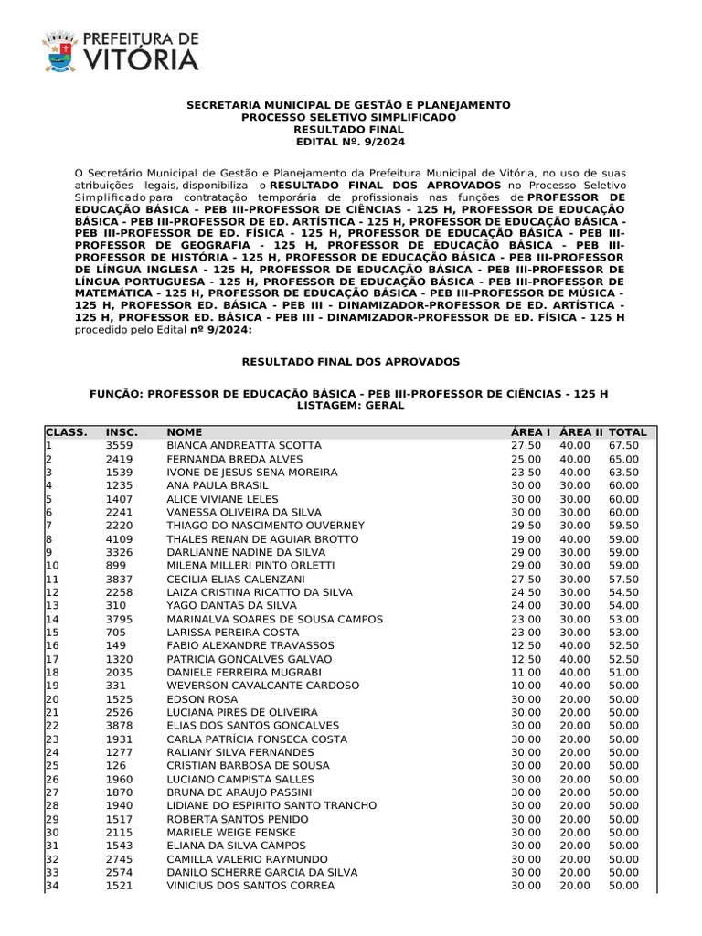 RESULTADO FINAL DOS APROVADOS