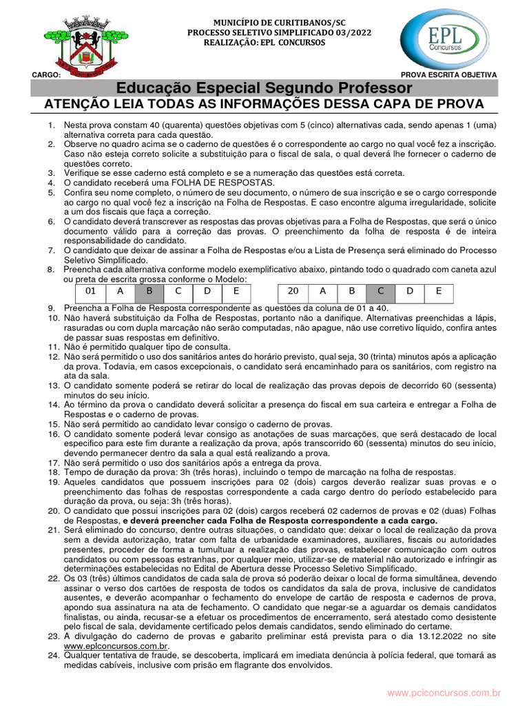 ATENÇÃO LEIA TODAS AS INFORMAÇÕES DESSA CAPA DE PROVA