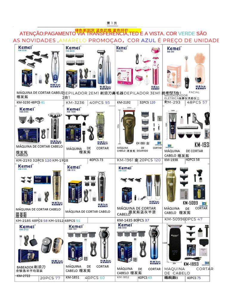 MÁQUINA DE CORTAR CABELODEPILADOR 2EM1 剃须刀鼻毛器 DEPILADOR 3EM1 脱毛仪 3 合 1 LIMPEZA FACIAL