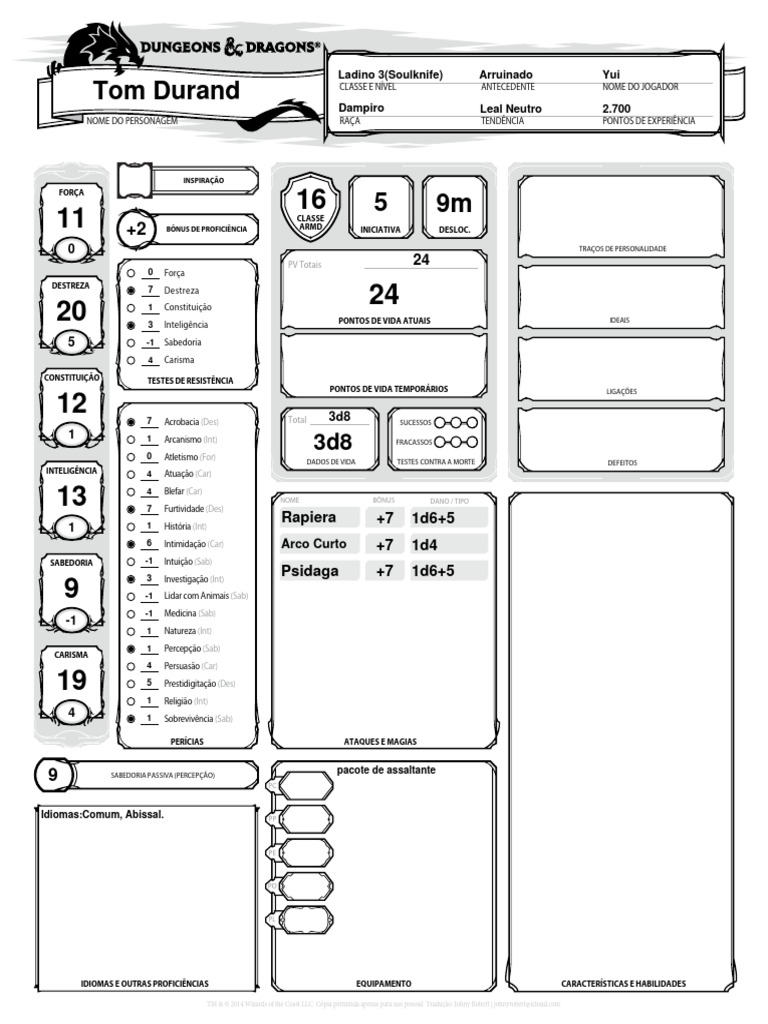 NOME DO PERSONAGEM RAÇA TENDÊNCIA PONTOS DE EXPERIÊNCIA