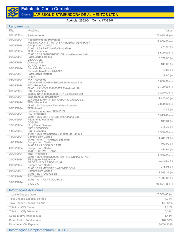 30/04/2024 Saldo Anterior 73.065,38 (+)