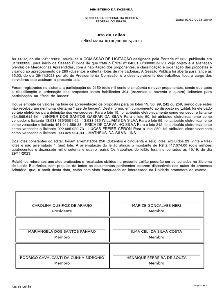 Ata do Leilão