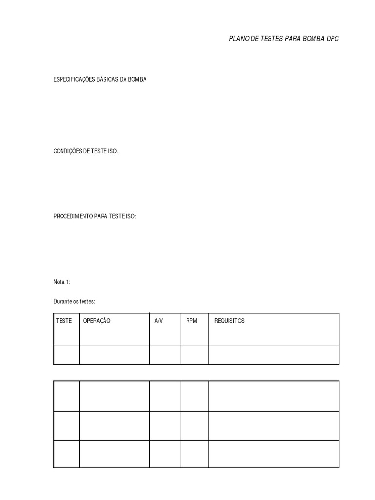TESTE OPERAÇÃO A/V RPM REQUISITOS