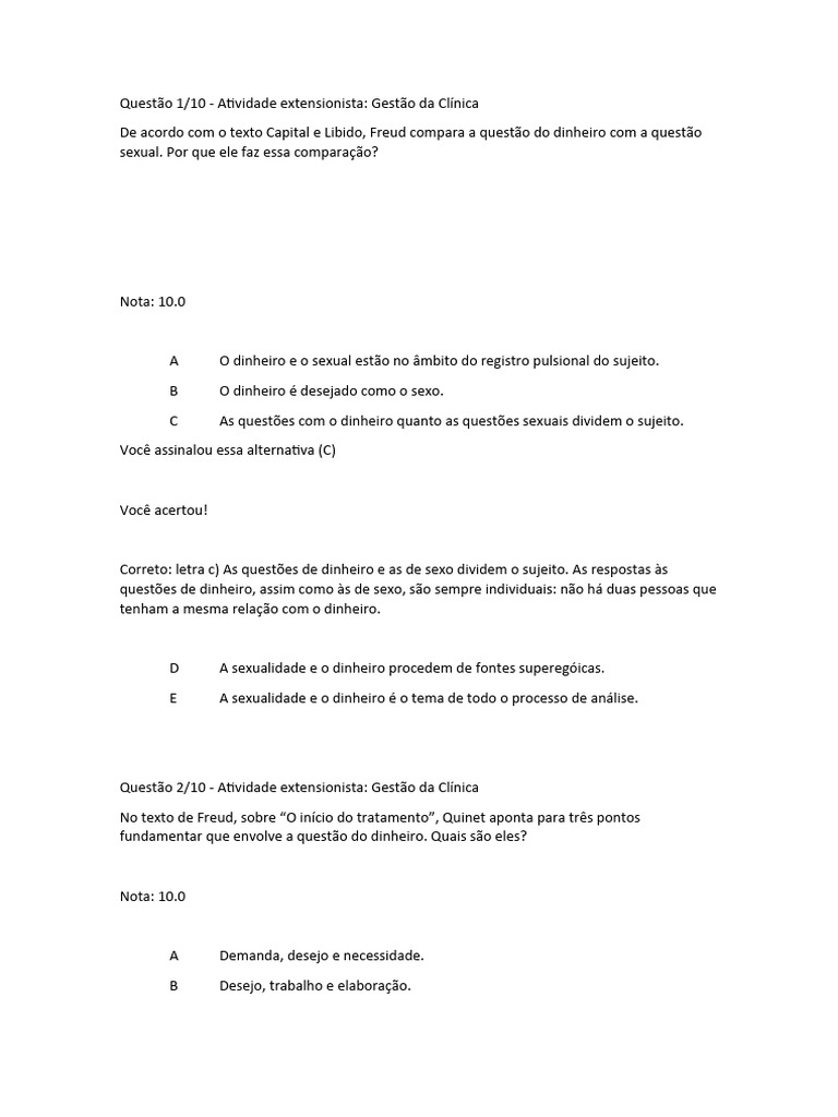 Questão 10/10 - Atividade extensionista: Gestão da Clínica