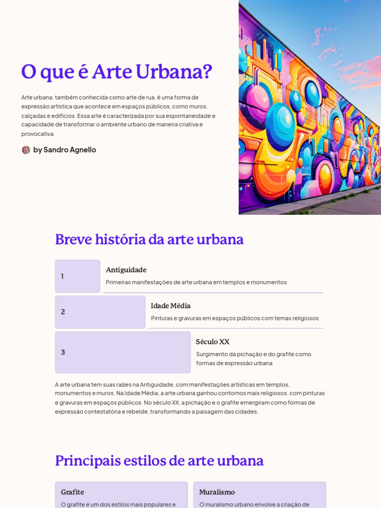 O grafite é um dos estilos mais populares e O muralismo urbano envolve a criação de