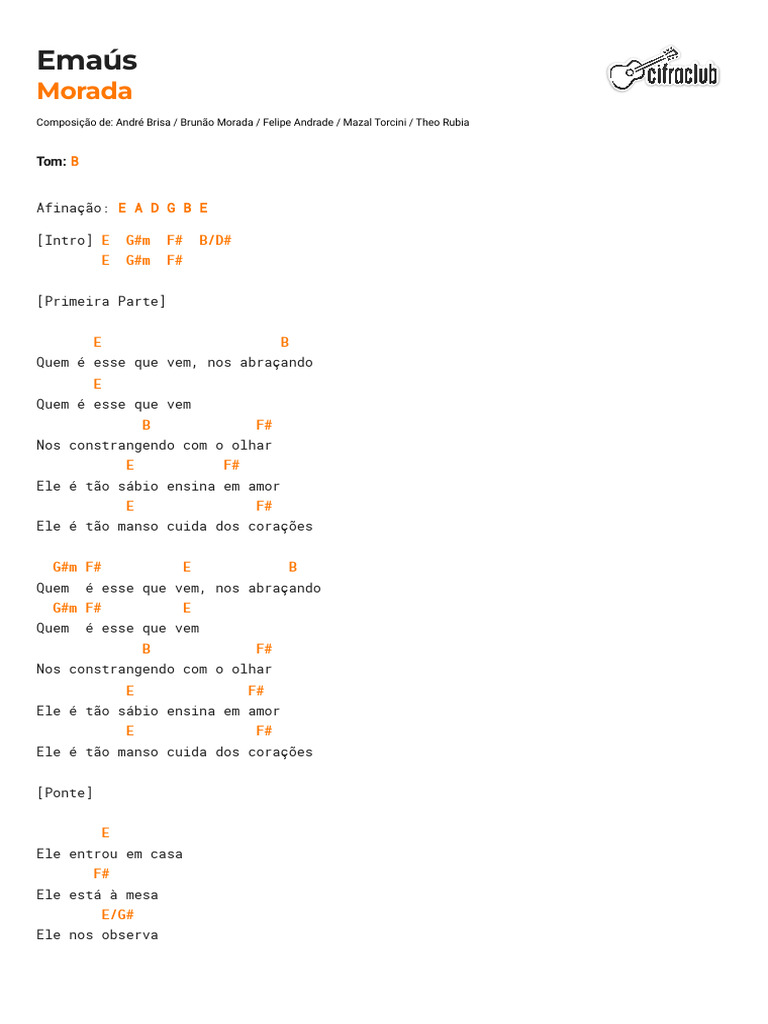 Composição de: André Brisa / Brunão Morada / Felipe Andrade / Mazal Torcini / Theo Rubia