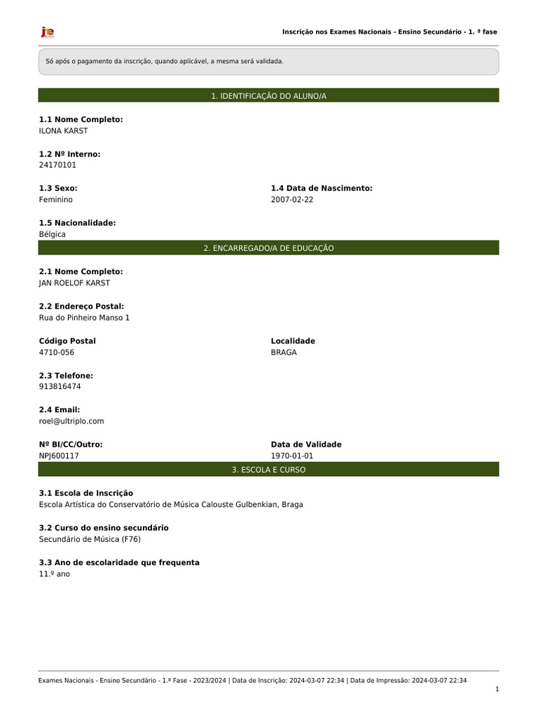 Exames Nacionais - Ensino Secundário - 1.ª Fase - 2023/2024 | Data de Inscrição: 2024-03-07 22:34 | Data de Impressão: 2024-03-07 22:34