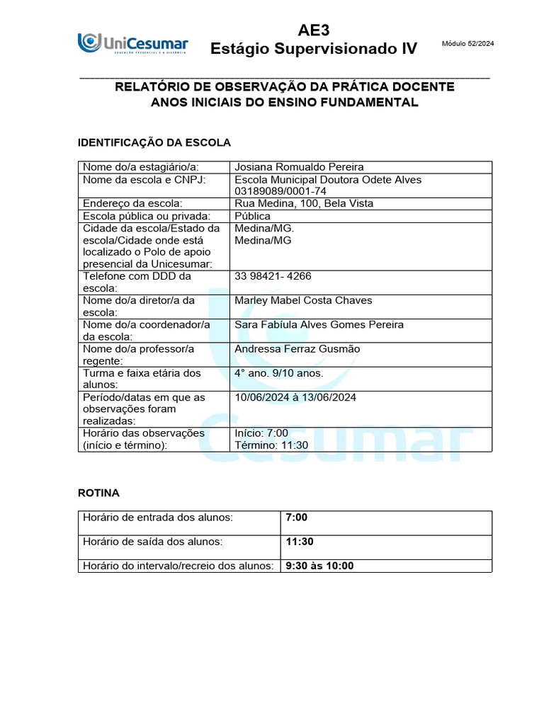 PARA CORREÇÃO DO RELATÓRIO DA PRÁTICA DOCENTE NOS