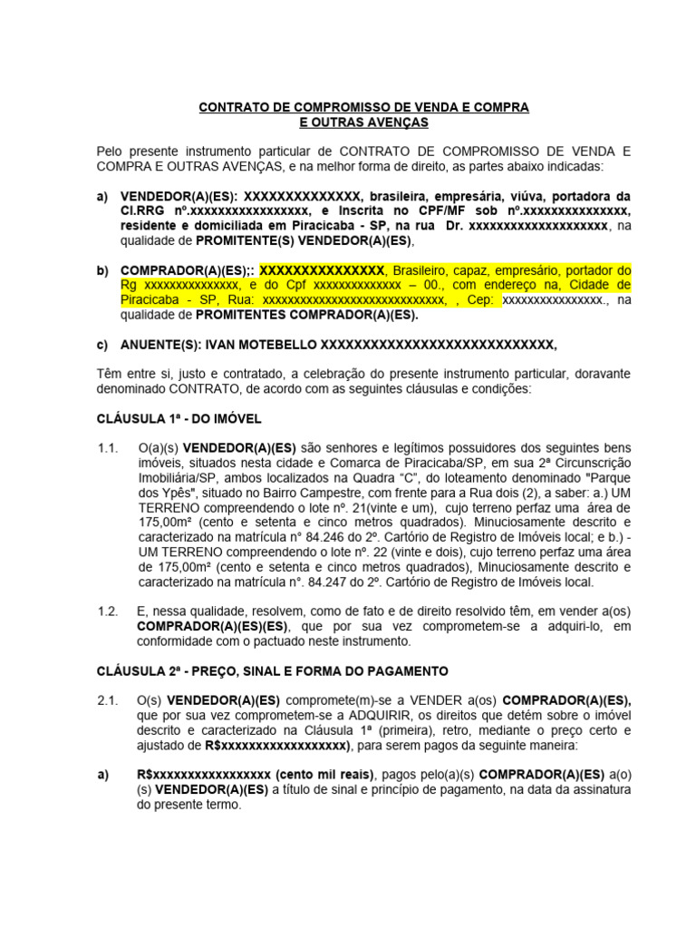 2.1. O(s) VENDEDOR(A)(ES) compromete(m)-se a VENDER a(os) COMPRADOR(A)(ES),