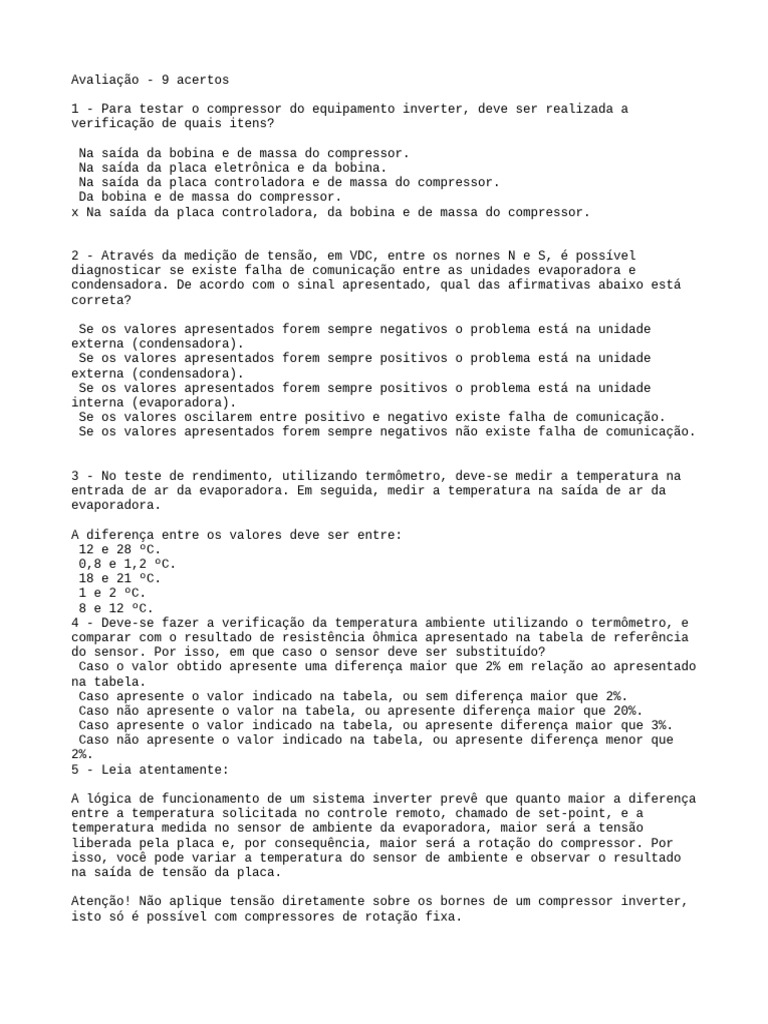 1 - Para testar o compressor do equipamento inverter, deve ser realizada a
