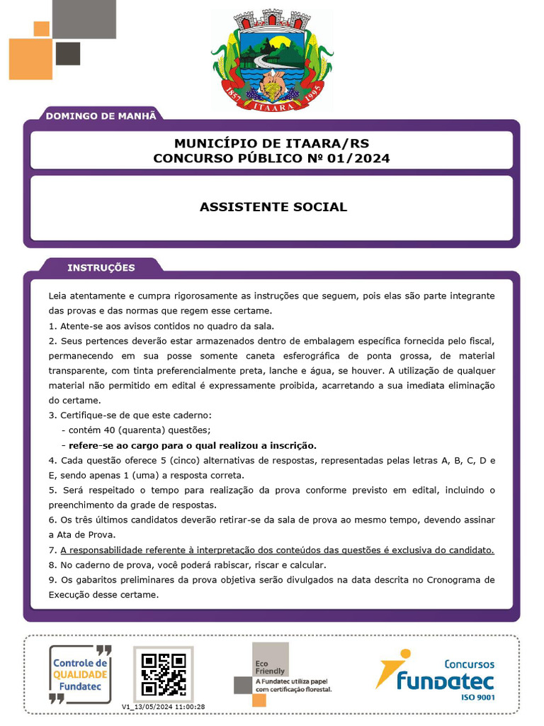 - contém 40 (quarenta) questões;