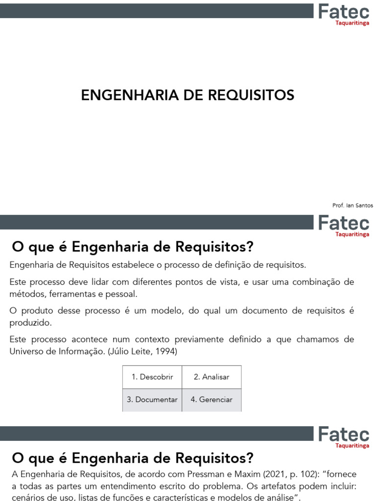 A Engenharia de Requisitos, de acordo com Pressman e Maxim (2021, p. 102): “fornece