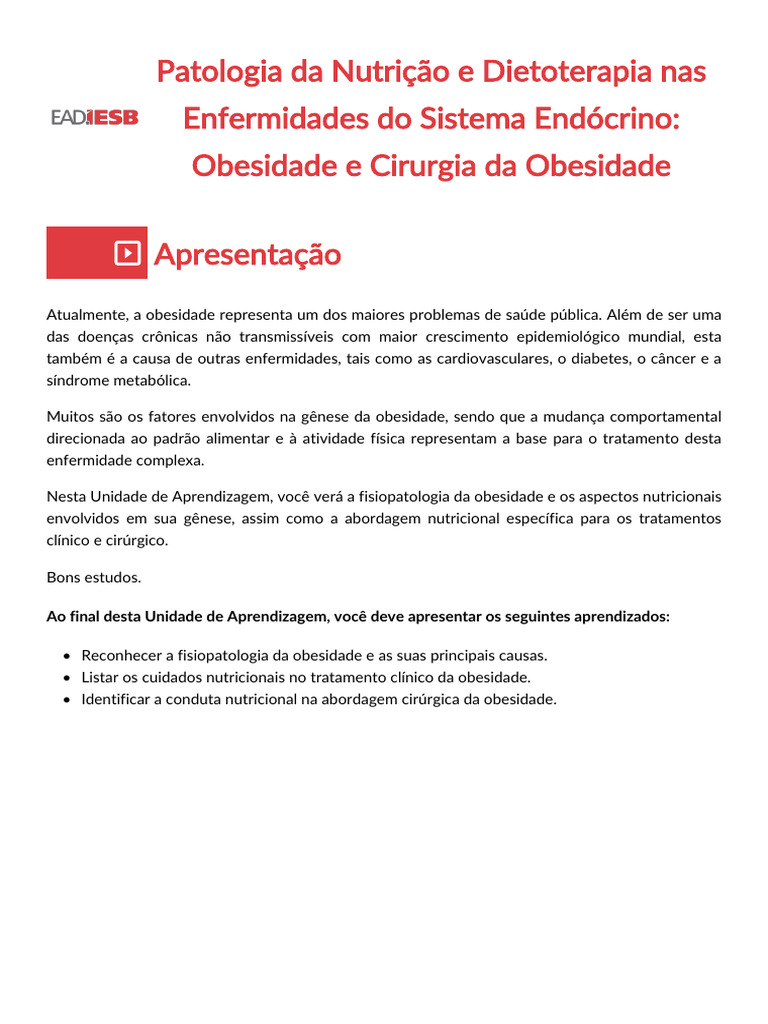 Neste capítulo, você vai estudar a fisiopatologia da obesidade e os as-
