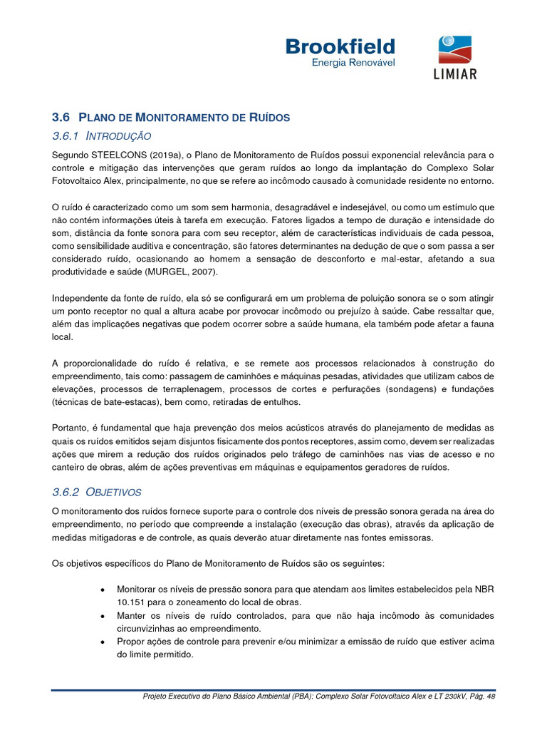 Os objetivos específicos do Plano de Monitoramento de Ruídos são os seguintes: