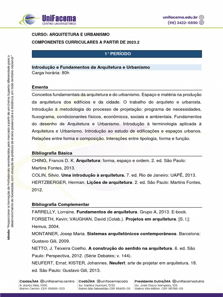 Componentes Curriculares Arquitetura 2023.2