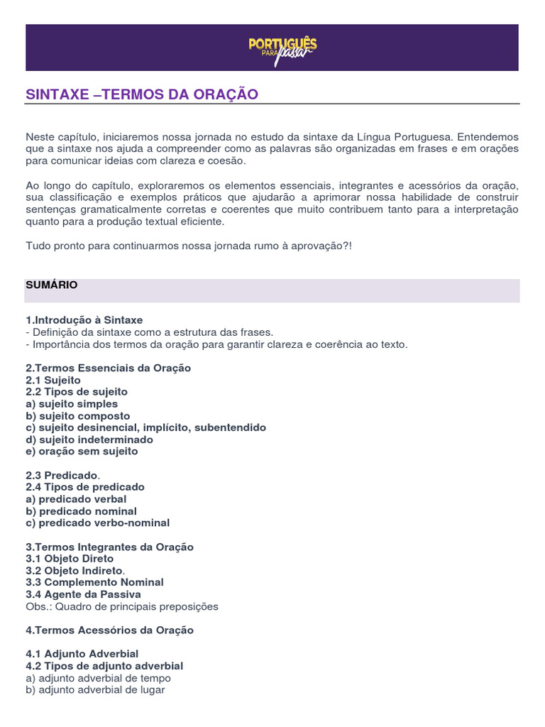 preparando para processos seletivos, a sintaxe é uma parte essencial do seu projeto de estudos da
